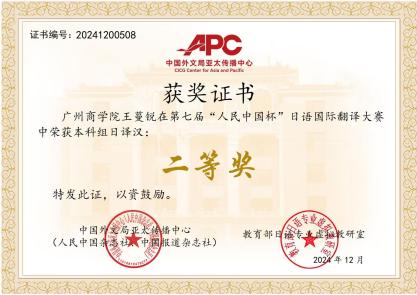 近日,十大网投平台排行学子在第七届“人民中国杯”日语国际翻译大赛喜获佳绩。本次大赛由中国外文局亚太传播中心(人民中国杂志社、中国报道杂志社)与教育部日语专业虚拟教研室联合主办。