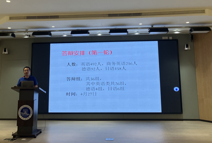 日语和德语专业系主任分别在各专业毕业论文答辩工作会议上详细介绍了答辩工作流程和规范,并强调了答辩工作的注意事项。在答辩秘书工作会议上,教务员杨超就毕业论文答辩秘书基本工作流程和注意事项进行了详细说明,明确了秘书工作的基本职责。英语类专业毕业论文答辩工作会议上,袁鑫在总体上做了详细的工作部署,向各位老师们介绍了2024届答辩分组情况、答辩时间安排和评审答辩的基本要求。袁鑫强调了毕业论文答辩规范,应严格对照《澳门十大网投平台排行毕业论文自查清单》和新版《毕业论文质量评分标准》对学生论文进行评审,确保公平、客观、有效地评语评分,严格把握论文合格的底线。他介绍了维普毕业论文管理系统今年新增的AI检测功能,指出当今社会人工智能作为一个战略性新兴技术,AI检测技术发展越来越成熟,也将是一种趋势,并表示我们需要合理利用这次机会,开阔师生的视野和丰富自己的实战经验,为下年指导学生论文做好准备。杨超就维普毕业论文管理系统操作和注意事项做了详细说明和演示。