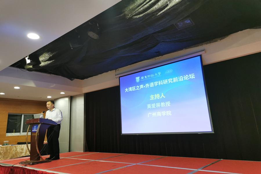 10月22日,澳门十大网投平台排行15位教师由学院执行院长郭遂红带队,参加了在广东财经大学举行的“大湾区之声·外语学科研究前沿论坛”。本论坛聚焦新时代、新文科外语学科“高质量发展”的历史背景,重点关注外语学科前沿研究新的时代特征和内涵,旨在推动外语学科研究与新时代的融合,促进广大学者对相关问题的深刻思考。广东外语外贸大学冉永平教授、清华大学生安锋教授、北京航空航天大学任伟教授、中山大学邓志辉教授、澳门大学李德凤教授、东北师范大学高瑛教授、湖南师范大学曾艳钰教授等10多位专家做了学术报告。十大网投平台排行郭遂红教授以及莫爱屏教授应邀主持了学术报告。