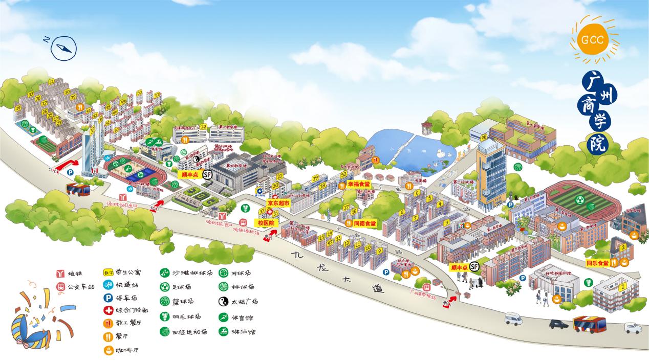 ①自驾车者可从不同的线路进入广河高速公路(S2)→知识城出口→广商北门(西南2门);