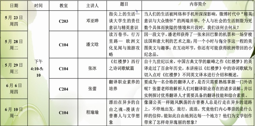 外语系教工党支部将于2013年5月下旬到6月上旬开展《春意论坛》,内容丰富,精彩不容错过!欢迎广大师生积极参与,详情见下图。