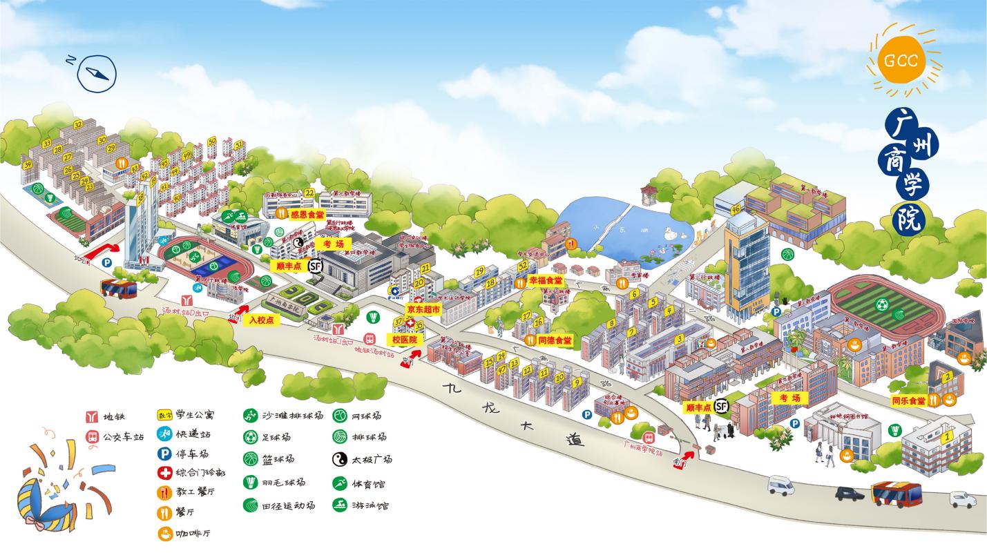①自驾车者可从不同的线路进入广河高速公路(S2)→知识城出口→广商北门(西南2门);