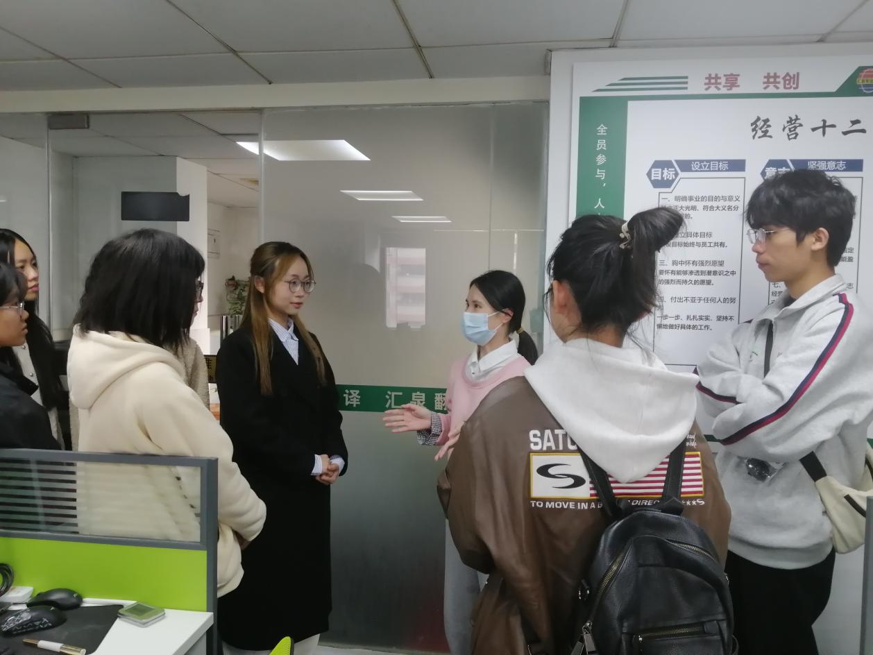 学院师生的到来深受企业重视,在交流会中,汇泉翻译技术代表人员从当下热门的计算机辅助翻译工具应用,到人工智能驱动的语言处理技术在翻译行业的前沿实践,结合实际案例讲解了新技术如何重塑翻译流程,提升翻译效率及质量管控。同时聚焦翻译就业问题,进行了详细剖析,让学生们真切领略到科技助力下精准翻译的魅力,打破了传统翻译纯手工劳作的认知局限,拓宽了技术视野。