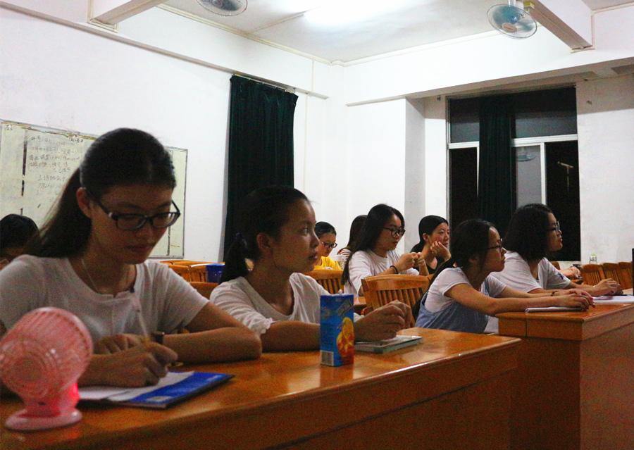 徐超书记首先强调考研的报考注意事项,着重强调要结合自己的实力、就业意向、家庭经济情况等因素选学校和专业,这是成功的第一要素。紧接着书记分析了近几年的考研情况以及分享往年考研师兄师姐的备考经验。13级英语专业周子钰创造了奇迹,身为英语专业学生,但凭着自己对美术的喜爱,自己夜以继日地学习美术基础,最终考上了心仪学校的美术专业。这一经历告诫考研学子不要轻言放弃,要有足够的信心和毅力迎接挑战。同时书记也分析了报考各所大学的优劣势和给予一些备考建议,希望考研学子跟有经验的学长深入沟通,收集历年来的考研资料,做好充分准备,才能少走弯路。