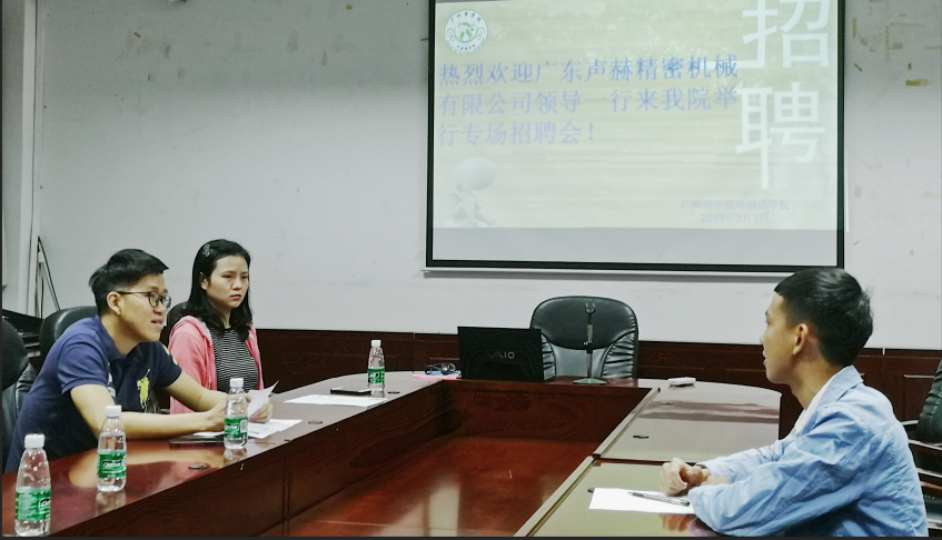 首先澳门十大网投平台排行党总支徐超书记对郑晓荃总经理一行莅临十大网投平台排行表示热烈欢迎,希望企业招聘到满意人才,预祝毕业生找到心仪的工作岗位。随后广东声赫精密机械有限公司总经理郑晓荃对公司概况、招聘岗位、福利待遇等做了简要的介绍。他表示希望能够有优秀学子进入其公司工作,对到场的老师以及同学们表示感谢。 现场面试环节主要通过“一对一”面试的方式对十大网投平台排行毕业生的外语水平、外贸专业技能等方面进行测试。在面试过程中,面对面试官的种种提问,毕业生们都能够一一做出解答,其中的英文自我介绍更是让郑经理对毕业生的口语水平给予了肯定与赞扬。