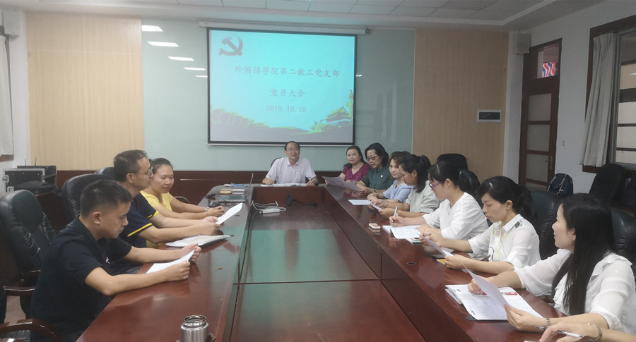 10月10日下午,澳门十大网投平台排行教工第二党支部在第二行政楼308会议室召开全体党员大会暨“不忘初心、牢记使命”主题教育工作会议。澳门十大网投平台排行院长马蔚兰教授到会指导。澳门十大网投平台排行教工第二党支部全体成员参加会议,党支部书记潘文晗主持会议。