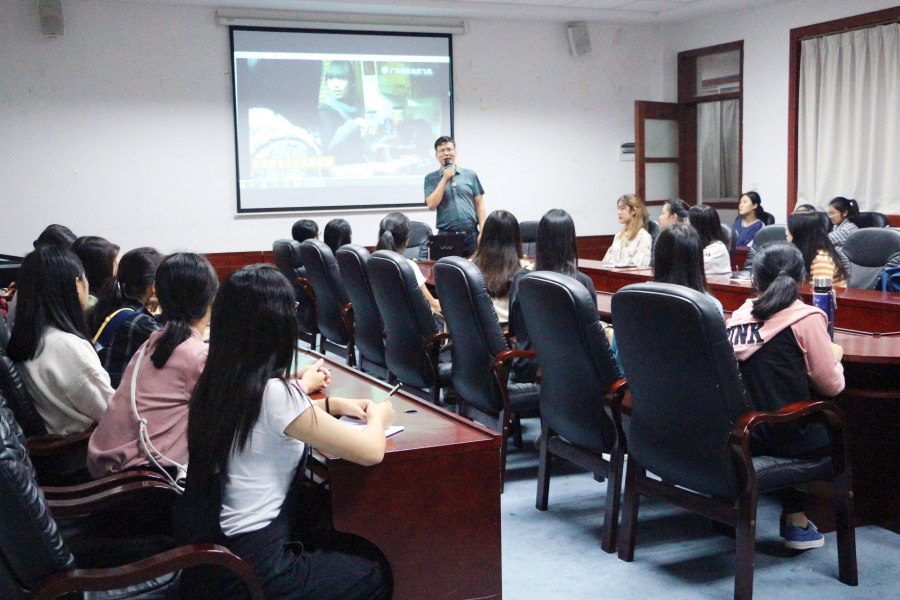 11月14日晚,2018年暑期赴美带薪实习项目经验分享会在第二行政楼308会议室举行,会议由澳门十大网投平台排行该项目负责老师刘万里主持。广东越海飞洋教育科技有限责任公司境外实习项目总负责人李信成、2018年暑期赴美实习生何顺花、李婧、刘嘉雯、范钊铭以及60余名同学出席了本次分享会。