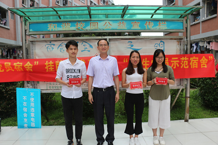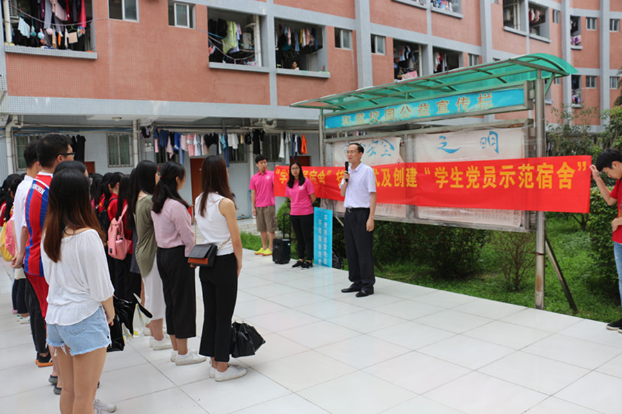徐超强调,全体党员必须高度认识本次活动的重要性,党员宿舍挂牌旨在让学生党员亮身份,引导党员发挥先锋模范作用,更好地服务同学。他同时提出,学生公寓的安全卫生是前提,整洁美化是基础,人际关系是重点,文化建设是核心,特色品牌是方向。全体党员必须在思想认识上发挥引领作用,在宿舍安全卫生上发挥监督作用,在人际关系上起到协调作用,在学风文化建设上发挥示范作用,在宿舍特色品牌建设发挥开拓作用。