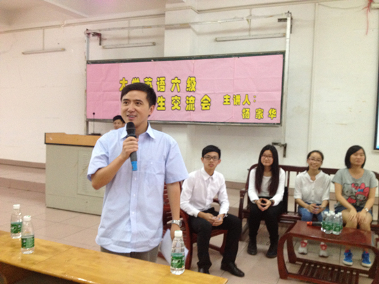 交流会上,杨家华老师介绍了十大网投平台排行2013年6月与12月大学生英语六级考试的具体情况。去年12月份,十大网投平台排行大学生英语六级考试的通过人数是637人,通过率达到29.05%,相比于去年6月份,通过率呈现递增趋势,这充分反映了十大网投平台排行教师在英语教学中取得了一定的成效。接下来,杨老师详细分析了听力、阅读、翻译和写作四大部分分别在试卷中所占的比重,并指出听力和阅读所占比例较大,希望同学们务必高度重视并采取有力措施切实提高这些部分的成绩。在英语六级中取得520分优异成绩的李欣健同学则为大家分享了她独特的英语学习方式。第一,词汇量积累。在考试前要有时间规划,分时间段进行定量的背诵单词,然后温故而知新;第二,错题本摘抄。她认为这是一个避免再次犯错的好方法。丁青青和梁宇茜两位同学则认为兴趣是最好的老师,建议同学们不要把学习英语当作一种负担,而要享受英语带来的乐趣,在学中玩,玩中学。在现场观众提问环节,同学们都积极提问,杨家华和学生嘉宾耐心解答了同学们的问题。
