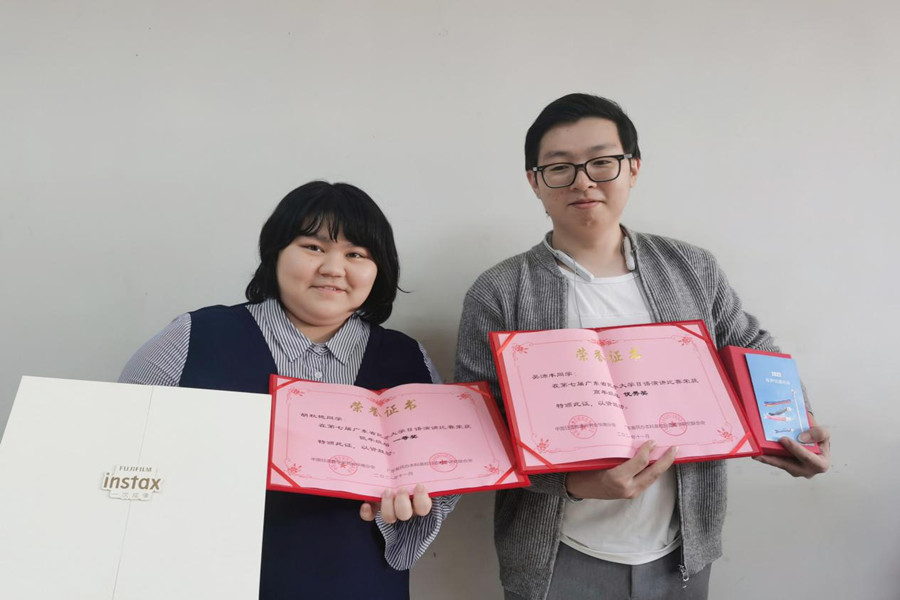 因采取线上比赛的缘故,本次比赛的即兴演讲环节的要求也由往年的拿到题目后进行十分钟的准备再开始作答变为在十秒内开始作答,这要求选手不仅要有较高的语言水平,还要有较强的反应能力。在赛前准备中,李晶老师、彭演老师对学生进行了语音语调、稿件撰写及演讲能力等方面的精心指导。决赛中,胡秋艳同学及吴沛丰同学,以扎实的日语能力为观众带来了精彩的演讲,在与其他12所学校的决赛选手同台竞技中获得了优异的成绩。彭演老师指导的胡秋艳同学获得低年级组一等奖;李晶老师指导的吴沛丰同学获得高年级组优秀奖。