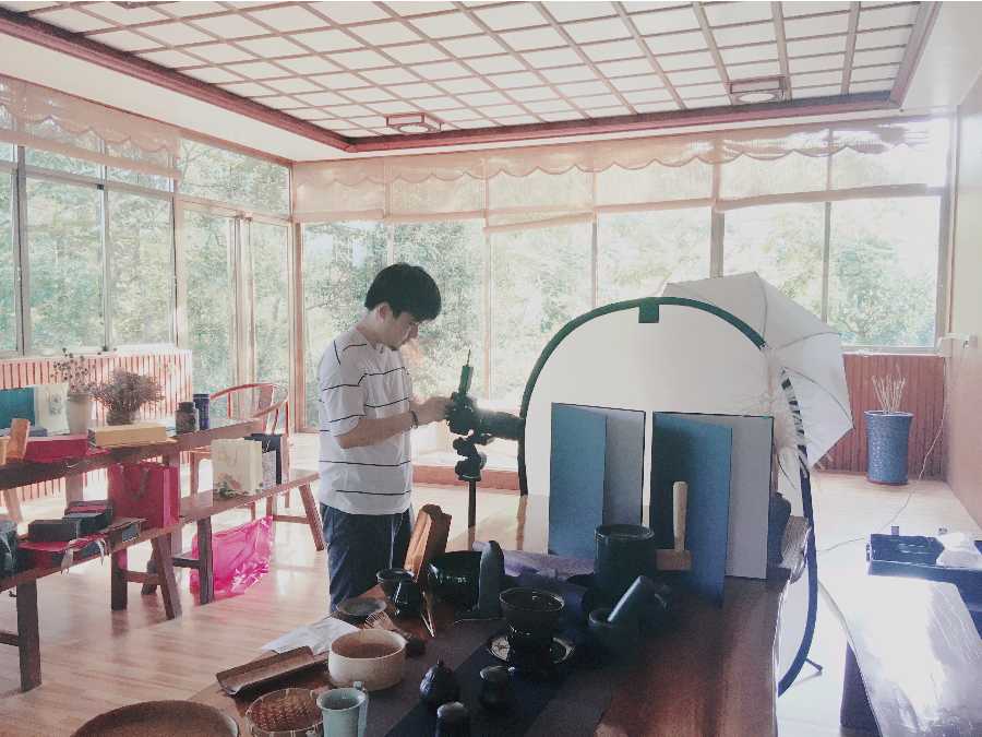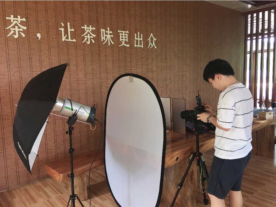 刘活佳校友在拍摄产品包装