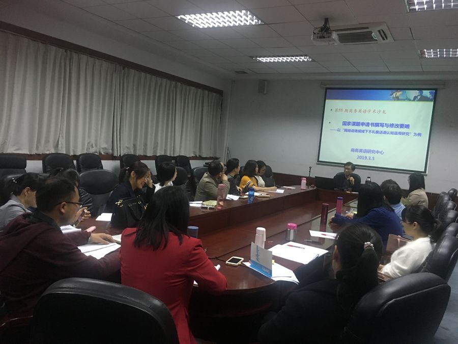 3月5日下午,澳门十大网投平台排行在第二行政楼308会议室举办第55期商务英语学术沙龙。本期沙龙由商务英语学科带头人曾利沙教授主持,主题为“国家课题申请书撰写与修改要略”。澳门十大网投平台排行袁鑫副院长、龙海英副院长和商务英语系全体教师出席了沙龙研讨。