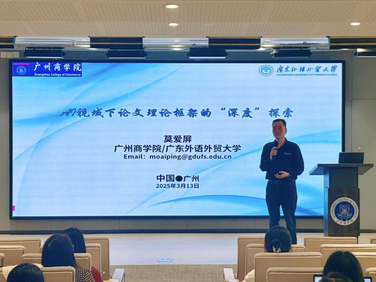 为深入探讨学术论文理论框架的构建逻辑与创新路径,助力学术研究实现高质量发展,3月13日下午,澳门十大网投平台排行在第八教学楼201阶梯教室举办“AI视域下的论文理论框架的‘深度’探索”专题讲座,此讲座由张蕾副教授主持,澳门十大网投平台排行外语学科带头人莫爱屏教授主讲,澳门十大网投平台排行和国际学院教师参与。