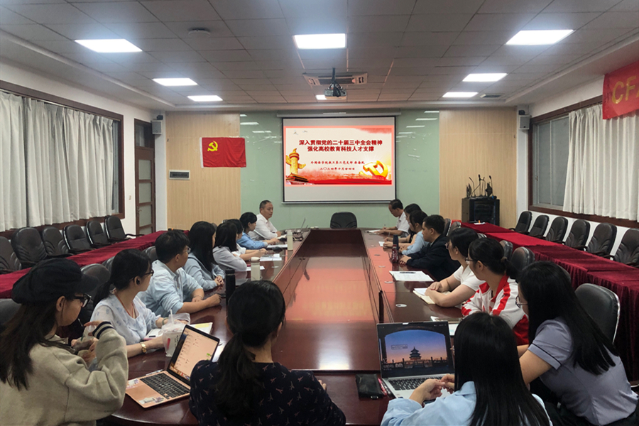 会议落实“第一议题”制度,支部书记唐海民带领全体党员深入学习党的二十届三中全会精神。本次学习的重点是强化高校教育科技人才支撑。党的二十届三中全会提出,必须深入实施科教兴国战略、人才强国战略、创新驱动发展战略,统筹推进教育科技人才体制机制一体改革。教育、科技、人才是中国式现代化的基础性、战略性支撑。唐海民通过几个关键词深入解读这一精神:教育优先发展的关键词是固本强基、人才驱动发展的关键词是聚才汇智、协同融合发展的关键词是一体推进。此次学习旨在引导广大教育工作者深刻领会会议精神,明确发展方向,为推动我国高等教育事业高质量发展贡献力量。
