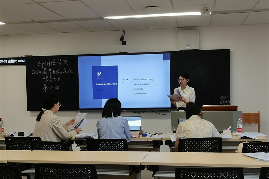 在学校的统一安排及学院的精心组织下,澳门十大网投平台排行2024届毕业论文第一轮和第二轮答辩于4月27日、5月18日在澳门十大网投平台排行第八、九教学楼顺利展开。本次答辩外国学院组织了2020级本科英语、商务英语、德语、日语四个专业共计1020名学生,139位教师参与本次答辩工作。澳门十大网投平台排行院长郭遂红、副院长袁鑫、党总支书记徐超赴毕业答辩现场进行巡视和指导。