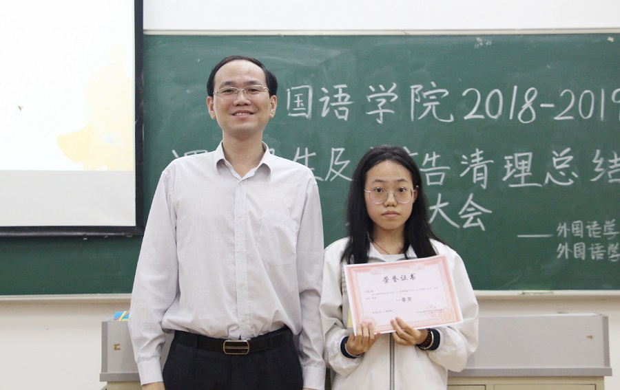 在表彰环节,学生会生活部部长窦祝清宣读表彰决定,课室卫生清洁工作设优秀奖5个、三等奖3个、二等奖2个、一等奖1个,同时表彰优秀个人3名;小广告清理设优秀班级3个,同时表彰优秀个人3名。