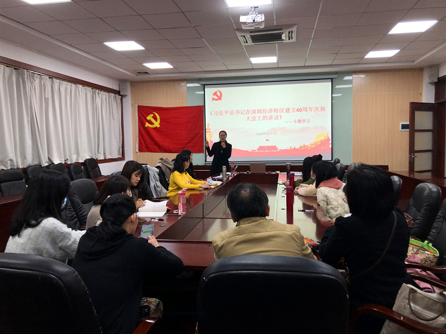 12月8日中午,澳门十大网投平台排行教工第一党支部在第二行政楼308开展“学习习近平总书记出席深圳经济特区建立40周年庆祝大会重要讲话精神”研讨活动,会议由党支部书记李海燕主持,全体党员参加。