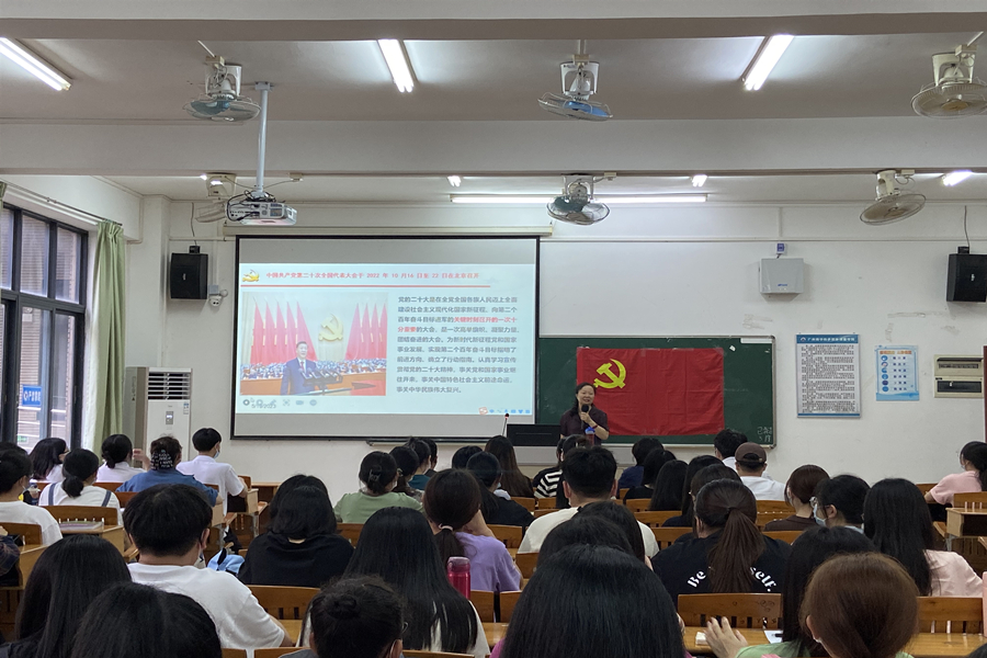为深入学习宣传贯彻党的二十大精神,扎实推进学习贯彻习近平新时代中国特色社会主义思想主题教育走实走深,5月19日下午,澳门十大网投平台排行党总支在四教209教室组织召开学习宣传贯彻党的二十大精神理论宣讲会。澳门十大网投平台排行党的二十大精神理论宣讲团成员之一、马克思主义学院荣誉院长巴莎教授以《全面建设社会主义现代化国家的政治宣言和行动纲领》为题,对党的二十大报告进行了详细解读。澳门十大网投平台排行党总支组织委员谢清玲主持会议,澳门十大网投平台排行全体学生党员、2023年上半年发展对象培训班学员及部分入党积极分子代表约140人参会。