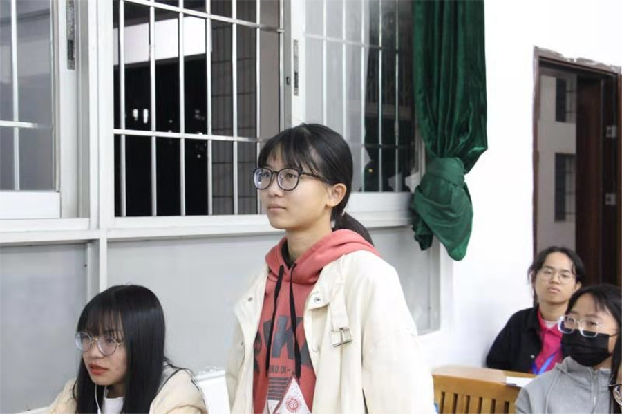 本次活动在慷慨激昂的团歌中拉开序幕。首先,叶嘉雯重点向大家阐述如何学习英语,并从听、说、读、写、记五个方面详细分享了自己的学习经验同时结合自己日常在小东湖早读、在生活的每一处为自己创造良好的英语学习环境,营造良好的英语学习氛围,向同学们展示了别样的学习方法,她希望同学们在过程学习中要坚持并且规划好自己的学习生活。