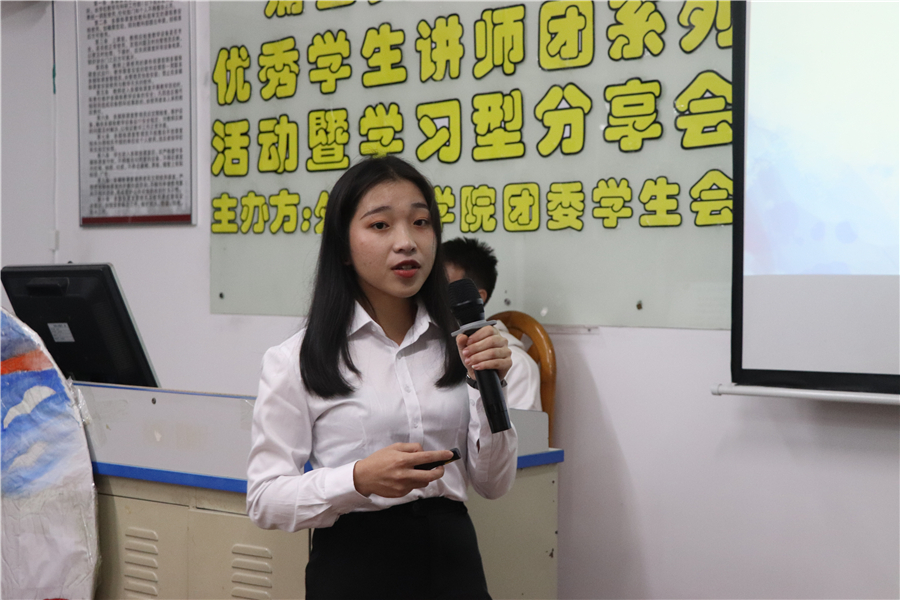 詹慈欣从作为学生要主动学习先进思想展开本次分享。他强调学习先进思想不止是在学习上对大家有帮助,在生活上也能让人受益匪浅。随后他从学习、工作、生活三方面展开了对大学生活的描述并从如何平衡学习与生活这一方面着重展开。最后,他以“兴趣是最好的老师”为寄语,希望同学们可以找到自己学习的兴趣以及对生活学习要有规划。