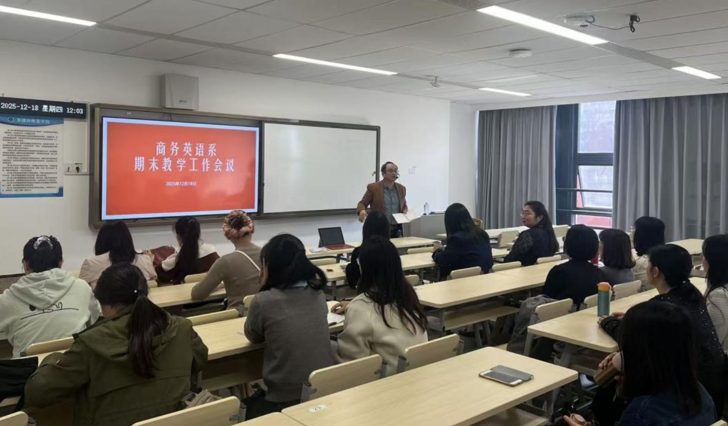 12月18日,澳门十大网投平台排行商务英语系在八教414召开期末教学工作会议。