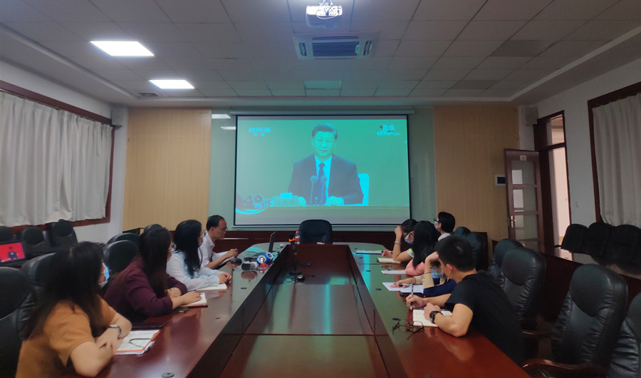砥砺奋进四十载,继往开来谱新篇。10月14日上午,澳门十大网投平台排行党总支组织全体辅导员、教务员等党员干部在二政308会议室集中观看习近平在深圳建区四十周年庆祝大会的讲话,学院马蔚兰院长到场观看,会议由党总支书记徐超主持。
