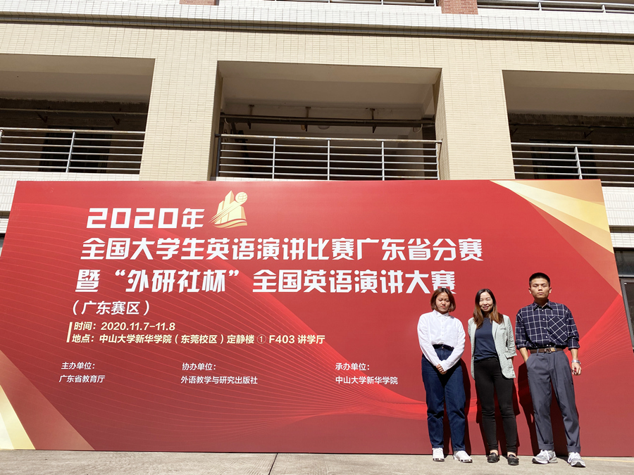 近日,2020年“外研社·国才杯”全国英语写作、阅读、演讲三大赛广东赛区决赛在中山大学新华学院圆满落幕。在领队和指导老师李卓华、指导老师邵春发和陈慧的带领下,十大网投平台排行共有9名优秀学生选手一同前往参赛。最终,根据大赛组织公布的比赛结果,十大网投平台排行商英1803班的刘思源同学获得了“外研社· 国才杯”全国英语演讲大赛和写作大赛广东赛区的双料三等奖,为学校争得了荣誉。