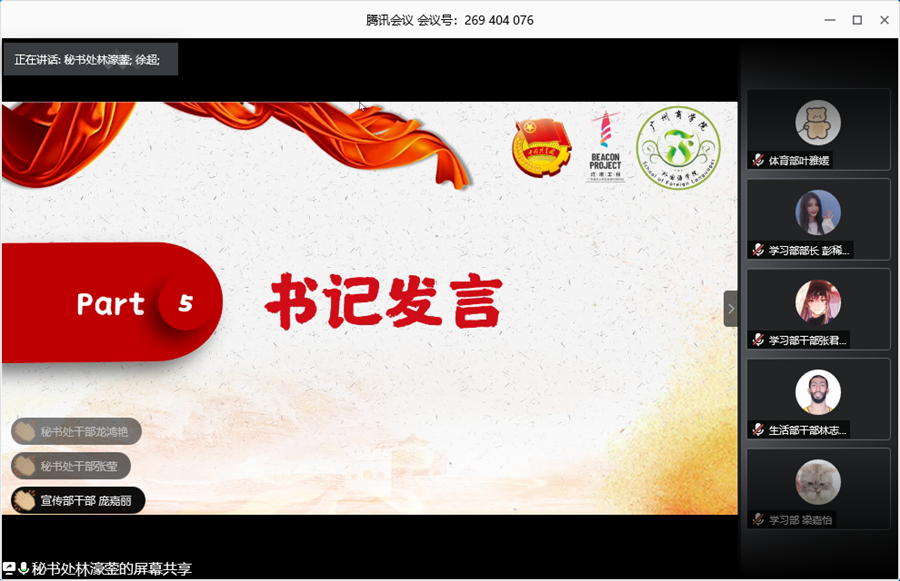 接着,在部门月工作总结汇报中,各部门不仅有条理地概括5月份的工作,还反思到工作中存在的不足之处,进一步地提出了整改措施,同时对部门6月份的工作安排都能够有计划、有目标。紧接着,学生会秘书长欧婉晴讲述了6月份学生会的活动时间安排以及干部期末考核方式,强调各部门除了要掌握好各项活动的时间节点,也要做好学年工作的总结以及部门资料整理。