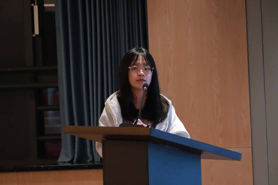邓倩璐进行经验分享。她从四级考试介绍、考试内容、应试技巧、资料推荐四个方面进行详细讲解。邓倩璐针对听力、阅读理解、语法和词汇、写作等题型给出了提分策略,提醒同学们在考试中的易错题型和注意事项。张慧萍和曾雅雅依次上台发言,分别分享了自己的备考经历、训练内容、学习方法的经验。她们建议同学们要熟悉专四考试题型和语法词汇,细心审题。同时,她们也强调了备考时间安排及考试重点内容并且对四级考试的书籍、公众号、网站等进行了详细分享,使同学们清晰了解到备考的阶段性方法。在互动提问环节中,同学们对于备考时间分配及安排提出了疑问。老师和学生嘉宾耐心地进行了详细的解答,并建议同学们长期积累,合理规划各个板块的学习时间。