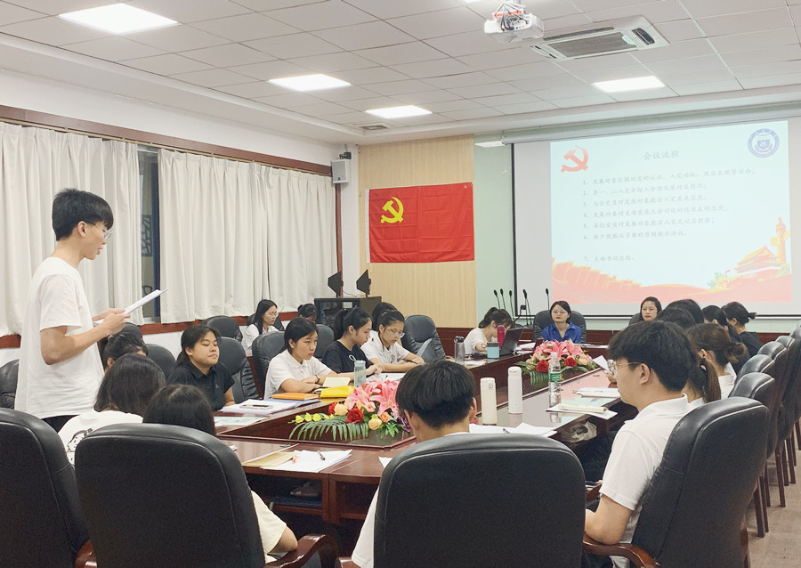 2021年5月18日19点至21点,澳门十大网投平台排行19级学生党支部于第二行政楼308顺利举行发展对象转预备党员通表大会,出席本次会议的有澳门十大网投平台排行党总支书记徐超、19级学生党支部书记谢清玲,教工党员伍思颖、蔡甜、许嘉琪,19级学生党支部17名发展对象和部分入党积极分子。