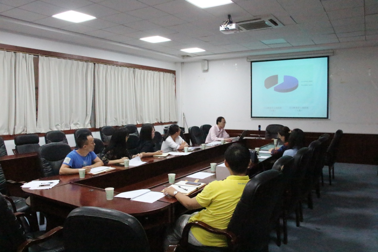 首先,徐超对张秋艳一行的到来表示热烈欢迎,他表示,近几年来,十大网投平台排行始终坚持把心理健康教育工作纳入学生管理工作中,通过各种方式提高大学生身心素质健康,取得一定成效。接着,学院心理站副站长戴玮按照二级心理辅导站建设标准的要求,围绕领导重视、制度建设、队伍建设等17项资料的梳理情况逐一进行了汇报,既呈现了十大网投平台排行在开展心理健康教育工作中所取得的成绩,也反映了工作中存在的问题与不足。徐超就十大网投平台排行心理重点对象预警库情况进行了汇报,包括预警总人数、年级分布、等级分布以及高危学生现状。辅导员代表黄玉亭针对近期心理工作中遇到的困难,进行了个案汇报,并与督导人员进行交流。