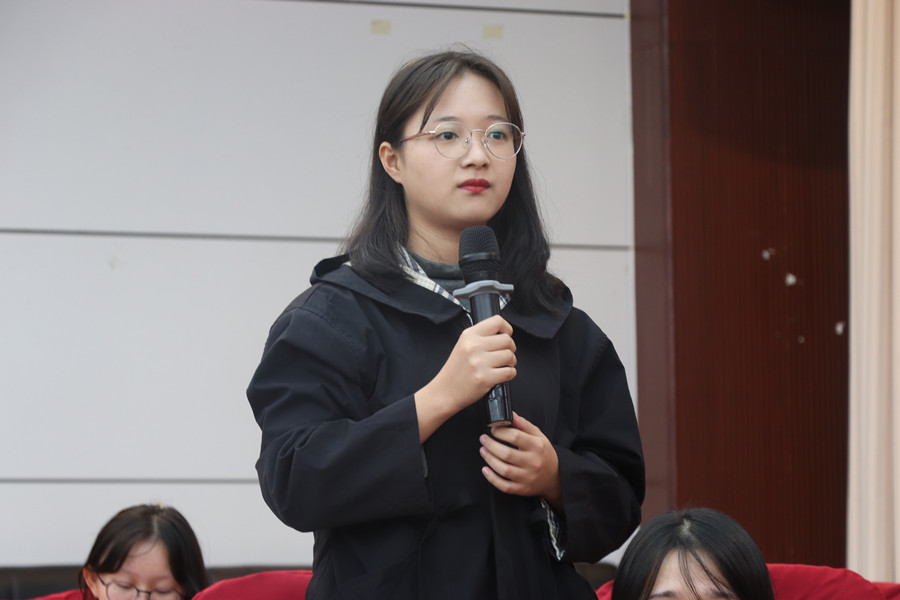 在师生互动环节,同学们针对如何有效提高词汇量、阅读能力和听力能力等方面进行了提问,张蕾老师进行了耐心的解答。老师建议同学们需要合理安排时间,坚持每天进行阅读和听力题型的训练,并且要根据自身情况合理选取相应难度的题材进行复习。张蕾老师强调,在备考过程中同学们需要有持之以恒、敢于尝试、不怕挫折的精神,才可以更好应对考试。