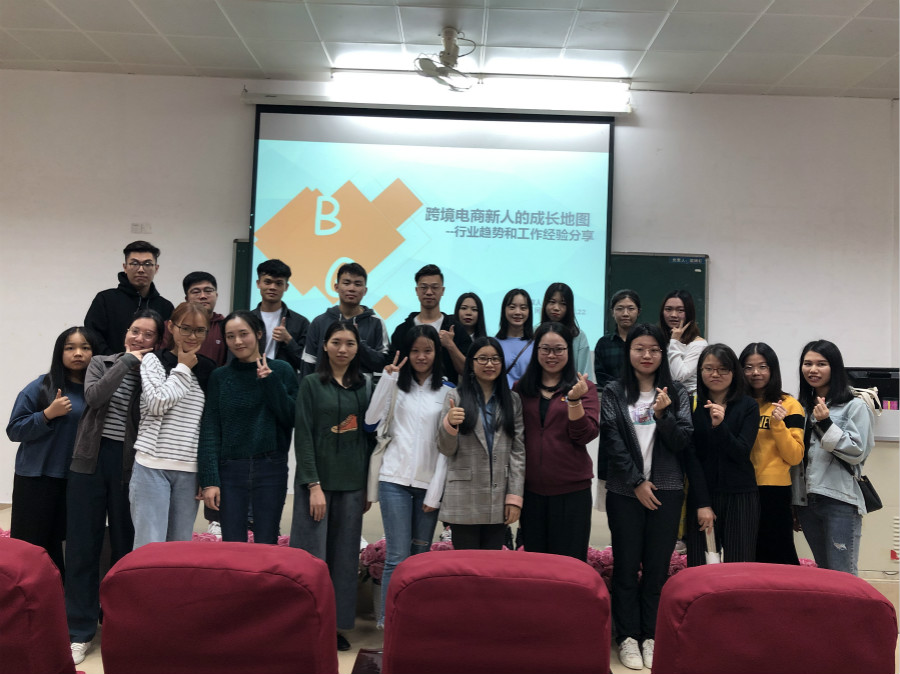 为推进“不忘初心、牢记使命”主题教育深入学生生活、促进学生就业,十大网投平台排行优秀校友返母校系列活动在第二报告厅举行,本次活动诚邀了2016届英语(涉外翻译)专业优秀校友张惠敏(现任广州市曼贝服饰有限公司品牌经理)返校与同学们一同分享跨境电商行业趋势和工作经验分享。十大网投平台排行16级辅导员黄玉亭和来自各年级100多名学生一同参加了活动。