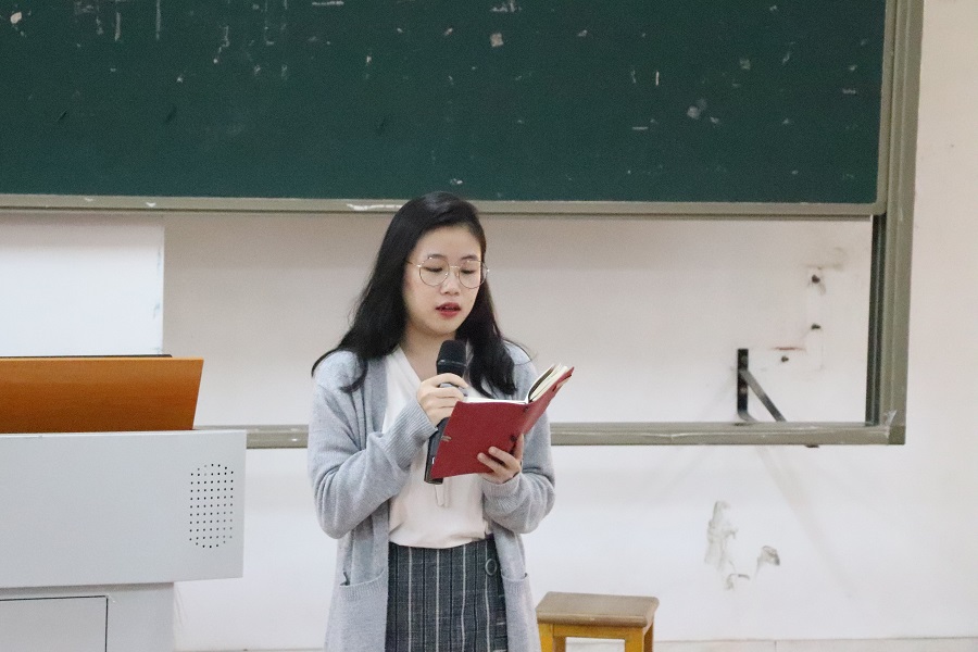进入学习分享环节,由优秀团支部代表商务英语1801班曾婉琪、英语1902班叶嘉雯以及商务英语2005班韩嘉星分享团课心得经验,将不断学习的观念在会议上传递开来,促使大家养成学习的意识和习惯。只有保持一颗学习的心,提高自身专业素养和综合能力素质,才能更好的在班级、学院以及学校发挥自身作用。