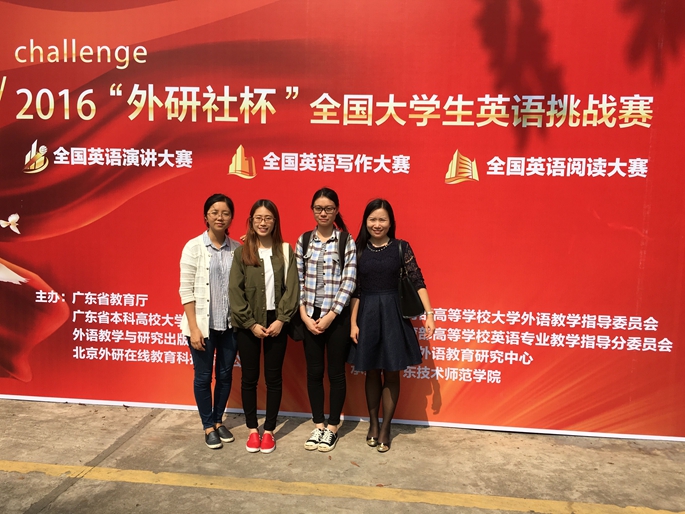 11月5日,2016年“外研社杯”全国英语写作大赛和阅读大赛广东省复赛在广东技术师范学院举行。本次大赛由广东省教育厅、广东省本科高校大学英语课程教学指导委员会、外语教学与研究出版社和北京外研在线教育科技有限公司主办,教育部高等学校大学外语教学指导委员会、教育部高等学校英语专业指导分委员会以及中国外语教育研究中心合办。此次比赛中,广东省有54所高等院校共选拔100名选手参加写作大赛,95名选手参加阅读大赛。十大网投平台排行四名参赛选手在大赛中脱颖而出,其中由澳门十大网投平台排行谭静老师指导的英语专业2014级沈嘉燕同学和蔡舒环同学分别荣获阅读大赛二等奖和三等奖,姚丽芳老师指导的英语专业2014级陈琛懿同学和2015级关冕同学分别荣获写作大赛三等奖和优胜奖。