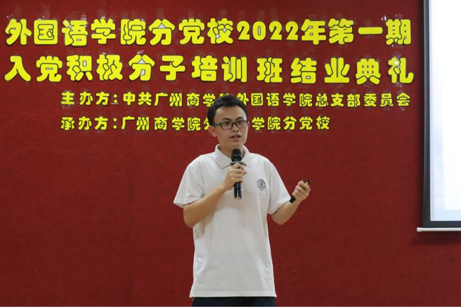 5月26日晚7点,澳门十大网投平台排行分党校在第一教学楼206举行2022年第一期入党积极分子培训班结业典礼。出席本次结业典礼的有:澳门十大网投平台排行党总支书记、分党校校长徐超,澳门十大网投平台排行党总支组织委员、分党校指导老师谢清玲,19级辅导员孙玉博、陈丽珊、蔡柳渊,20级辅导员蔡文蝶、丁洁、刘黄玲,21级辅导员李超、何沛瑾,出席典礼,本期结业学员参加典礼。本次活动由林泽、陈梓圻主持。