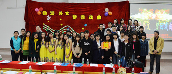 3月21日19:30,我系 “畅游外文,梦回戏曲”外文歌曲合唱大赛在教学楼A107如火如荼地进行。我系党总支书记徐超、团委书记刘丽萍、10级辅导员刘万里、13级辅导员雷肖茹、外教老师Paul、德语教师钟秀慧等出席了本次活动。