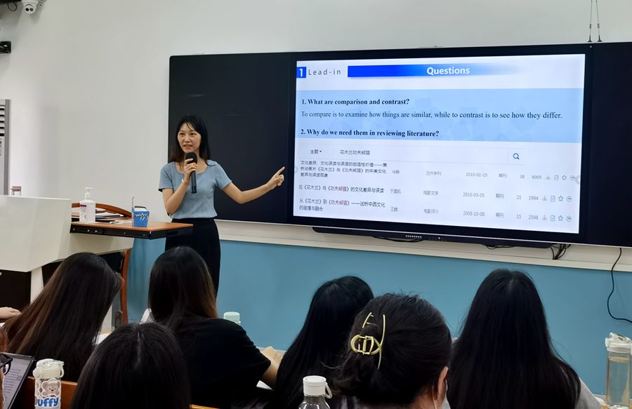 本次研讨课主讲为吴婷老师,教学内容为“Comparison and Contrast Between Studies”。吴老师首先以Comparison与Contrast之含义与异同为引入,进一步讲解了如何应用两种典型结构Block 及 Point-by-point,并结合具体文献范例予以分析,比较两篇文献的异同。之后,学生基于所学内容,以小组为单位进行实践,并利用超星平台互点互评,从而加深其对文献综述和相关写作技巧的学习与理解。吴老师教学设计完整,教学环节紧凑,积极引导学生思考,师生互动较多,课堂气氛活跃。