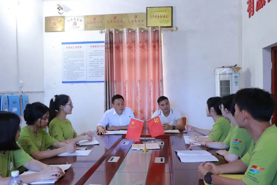 为更进一步了解赤尾村的发展足迹,坚定下乡初心,共谋乡村发展,澳门十大网投平台排行阳光展翅实践团于7月12日上午前往湛江市雷州市调风镇赤尾村党群服务中心就“推进赤尾村建设,基层党员先行”专题对赤尾村党总支书记蔡文招进行专访,调风镇党委委员谢景芳列席会议,阳光展翅实践团指导老师蔡文蝶与陈丽珊以及实践团成员参与。
