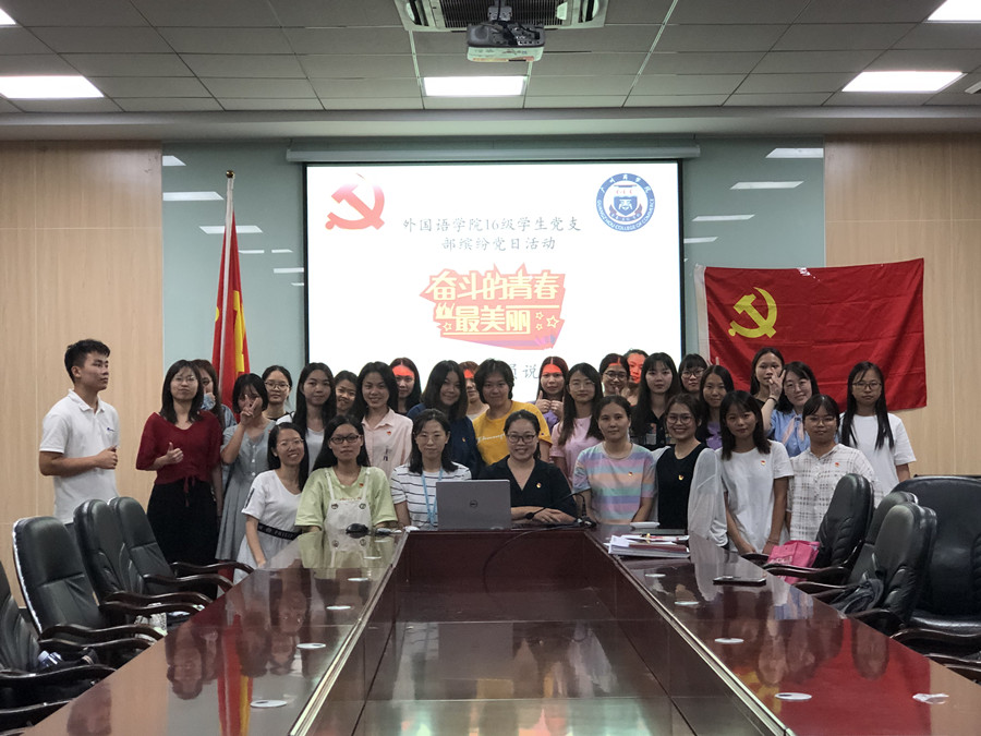 为落实“不忘初心、牢记使命”主题教育文件精神,深入推进主题教育的“三重温”活动,10月15日19:00,澳门十大网投平台排行16级学生党支部在第二行政楼108会议室举行以“奋斗的青春最美丽”为主题党日活动——优秀共产党员说。党支部书记黄玉亭、副书记戴玮和全体学生党员共聚一堂,一起倾听优秀学生党员代表16级商务英语专业郭丹宜和英语专业陈小婉的奋斗故事。