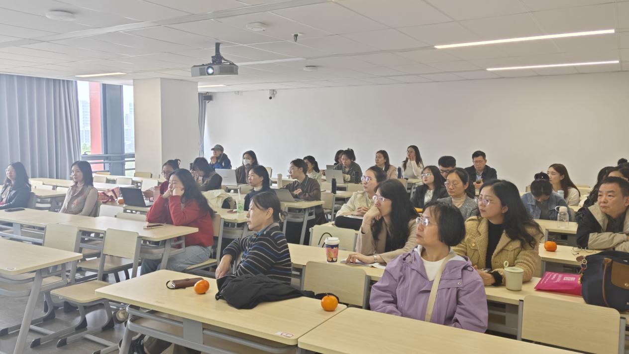 姚彤老师则从《学术论文与研究方法》课程的角度出发,分析了AI工具给写作课堂师生的挑战与机遇。她指出,AI工具的广泛应用虽然提高了教学效率,但也带来了学生依赖性强、缺乏独立思考等问题。为此,她建议教师们应引导学生正确使用AI工具,同时注重培养他们的阅读能力与批判性思维能力。此外,她还强调了AI在助推写作的前中后三个阶段中的重要作用,鼓励教师们积极探索AI技术在教学中的应用潜力。