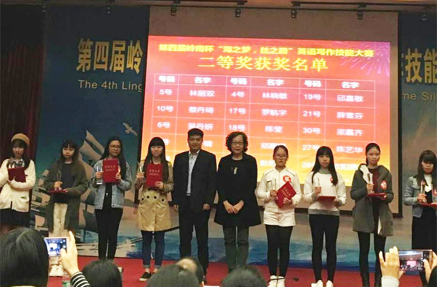 12月3日,第四届岭南杯“海之梦,丝之路”英语写作技能大赛复赛和决赛在华南师范大学隆重举行。在领队老师李卓华和指导老师黄景全、伍彩芬、田晶晶的带领下,十大网投平台排行共有7名学生前往参加比赛,其中4名同学以出色的表现,分别荣获得二等奖和三等奖。澳门十大网投平台排行2015级德语专业的罗航宇同学以复赛第二名的成绩顺利进入决赛,并且获得了公共英语本科组的二等奖;电子商务管理学院2014级的李小慧、2015级的张榕桂和黄惠悦三位同学荣获公共英语本科组三等奖。此外,澳门十大网投平台排行的英语老师李卓华、黄景全、伍彩芬、田晶晶获优秀指导老师称号。