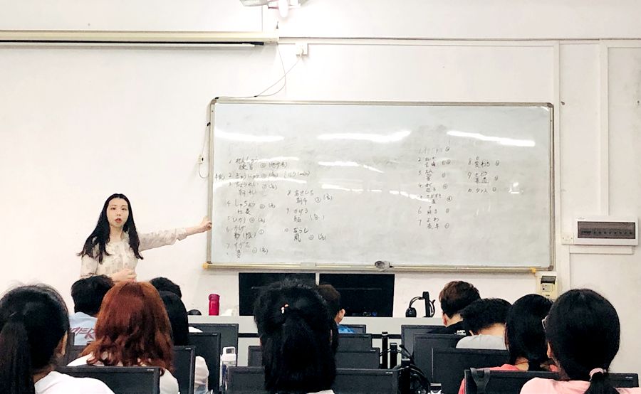蔡甜老师在课堂上