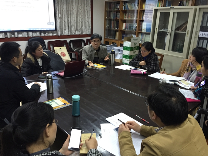 此次学术沙龙围绕以下两个方面进行讨论,一是优化教学内容,突出教学重点;二是如何培养学生发现问题,解决问题的能力。曾利沙教授就此次议题进行了阐释,强调教师应在教学活动的设计上注重对学生学习潜能的开发,让学生积极参与到整个教学过程中来,教师应积极引导和督促,培养学生发现问题和解决问题的能力。曾教授以“图式理论”和“语境参数论”为理论基石,结合上一期演示的第三单元课文补充阐释了如何将商务英语“专题知识”图示化,系统化和范畴化,还展示了不同环节如何设计学生活动,让学生在参与活动的过程中发现问题,并解决问题,以培养学生听说读写译五大基本语言技能及必要的商务技能。