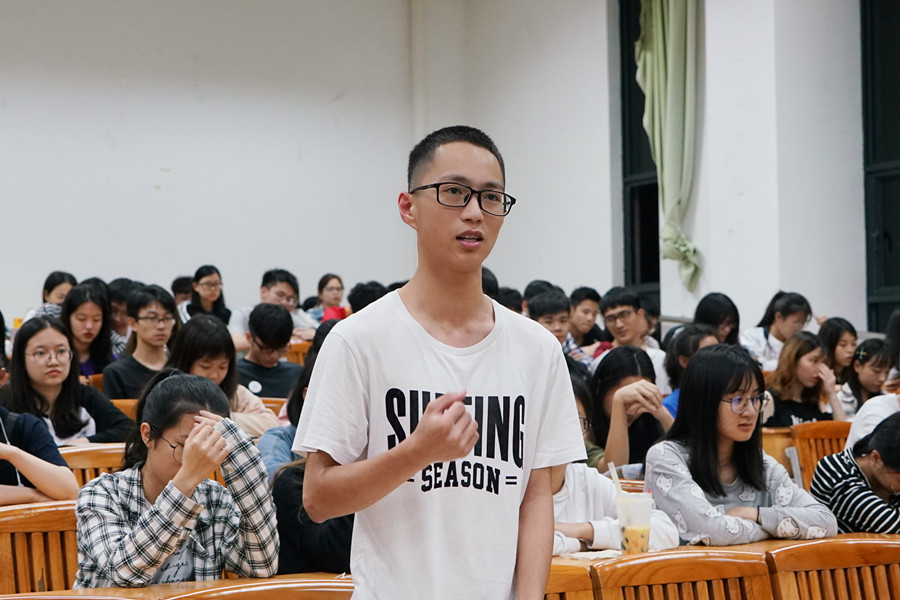 徐超首先就我国现时的中国特色社会主义道路形势作出自我见解并与同学们围绕这一话题进行互动探讨,引导同学们积极去学习社会主义思想,努力学习技术知识,丰富头脑,更好地为国家及社会做贡献。随后徐超从“why”、“what”和“how”三个维度详细讲解了中国特色社会主义,引导学生客观公正地认识中国社会主义。接下来徐超从社会主义发展的六个阶段讲解了为什么要走中国特色社会主义道路,再从中国特色社会主义道路、中国特色社会主义理论体系和中国特色社会主义制度三方面来引导当代青年如何践行中国特色社会主义价值观。他鼓励同学们学会去总结梳理自身生活行为,多走出去看世界,开阔个人眼界,提升自己。最后,徐超将中国特色社会主义道路发展历程中的经验映射到当代青年学生个人的发展道路,引导同学擅于借鉴他人经验,采纳亲友建议,选择适合自己的道路并脚踏实地地走好每一步。