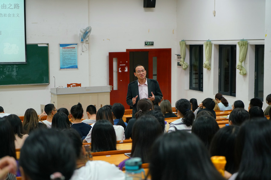 为进一步强化当代大学生的思想政治引领,教育引导青年学生认识时代使命、担当时代使命,坚定对社会主义和共产主义的信念。十大网投平台排行于3月27日晚在第四教学楼308举行了以“实现中华民族伟大复兴的必由之路”为主题的思想政治理论课,主讲人为党总支书记徐超,2018级商务英语及日语专业的近200名学生参与了本次课程的学习。