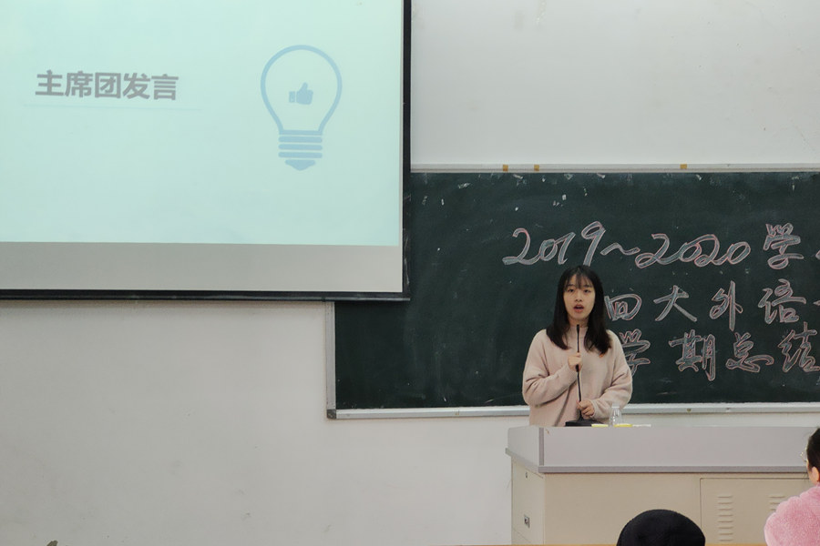 在大会上,英语协会、日语协会、德语协会、商英协会的负责人分别上台汇报工作,他们对本协会本学期所举办的活动进行了总结,并反思了在开展活动中所出现的问题。除此之外,他们还对下一学期的工作拟定了相关的期望与计划。