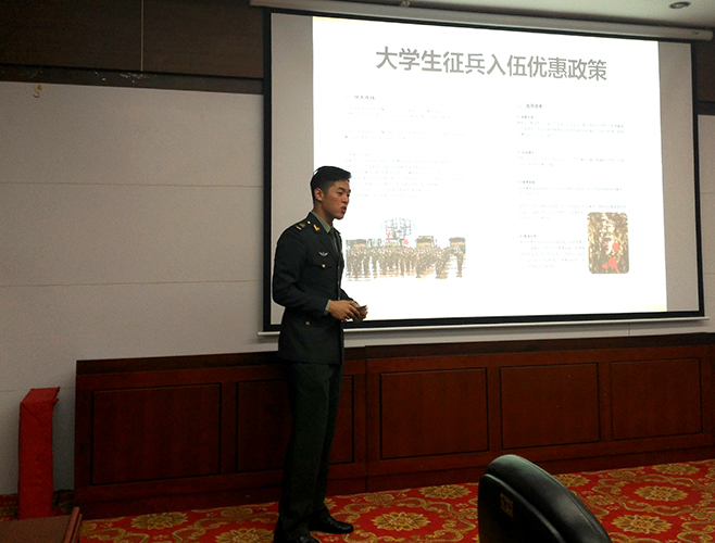 本次交流会以一首激动人心的电视剧《国防生》》主题曲拉开了序幕。徐超书记首先做了讲话,他通过讲述我国的兵源需求和“强军梦”鼓励现场的同学们主动去了解、去参与、并积极投身到我国的国防建设中来。