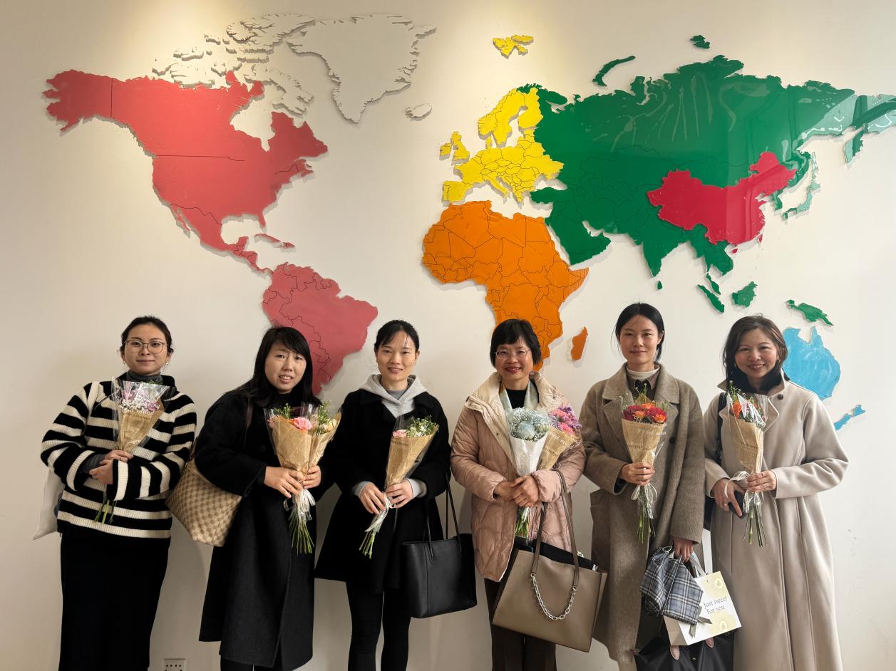 当一束束鲜花送到她们手中时,女教师们的脸上都洋溢出了灿烂的笑容,那笑容就如同手中鲜花一般绚烂夺目。她们纷纷表示,这束鲜花不仅带来了视觉上的美感和嗅觉上的愉悦,更重要的是让她们在这个节日里感受到了外院大家庭的温暖以及同事们的支持与鼓励。馥郁的玫瑰、清雅的康乃馨与向阳的向日葵交织成束,既寓意女性的柔美坚韧,也传递着学院对“她力量”的真诚礼赞。收到鲜花的女教师们惊喜不已,笑靥如花,办公室内暖意融融,节日的喜悦在欢声笑语中流淌。