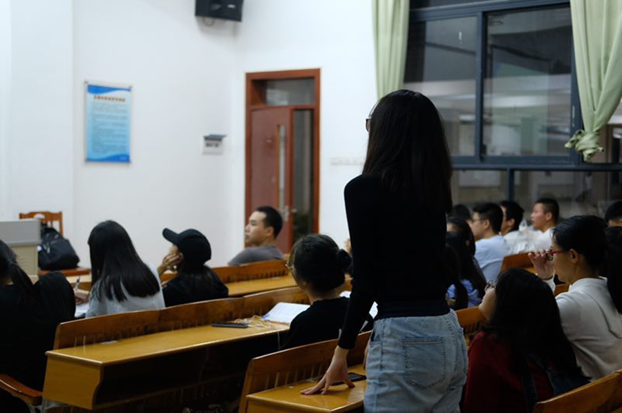 班会的最后,辅导员伍思颖老师做了相关总结与延伸,呼吁大家认真学习不耻下问、加强体育锻炼、学会调整心理状态等等;相信同学们对大学生活也有了等明确的目标,但枝叶仍需靠每位同学日复一日的摸索与前行,把握好大学里的每一天,方为不负韶华。希望2019级英语、德语专业的学生都能实现德才兼备,为更好地成为社会主义接班人做准备,从而推动伟大中国梦的实现,这将是同学们的永远的大主题。